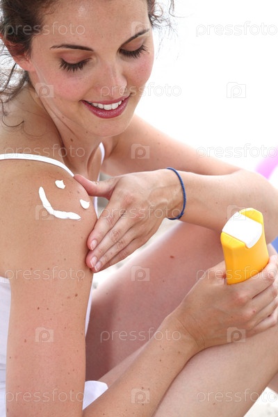 Женщина применяет солнцезащитный крем