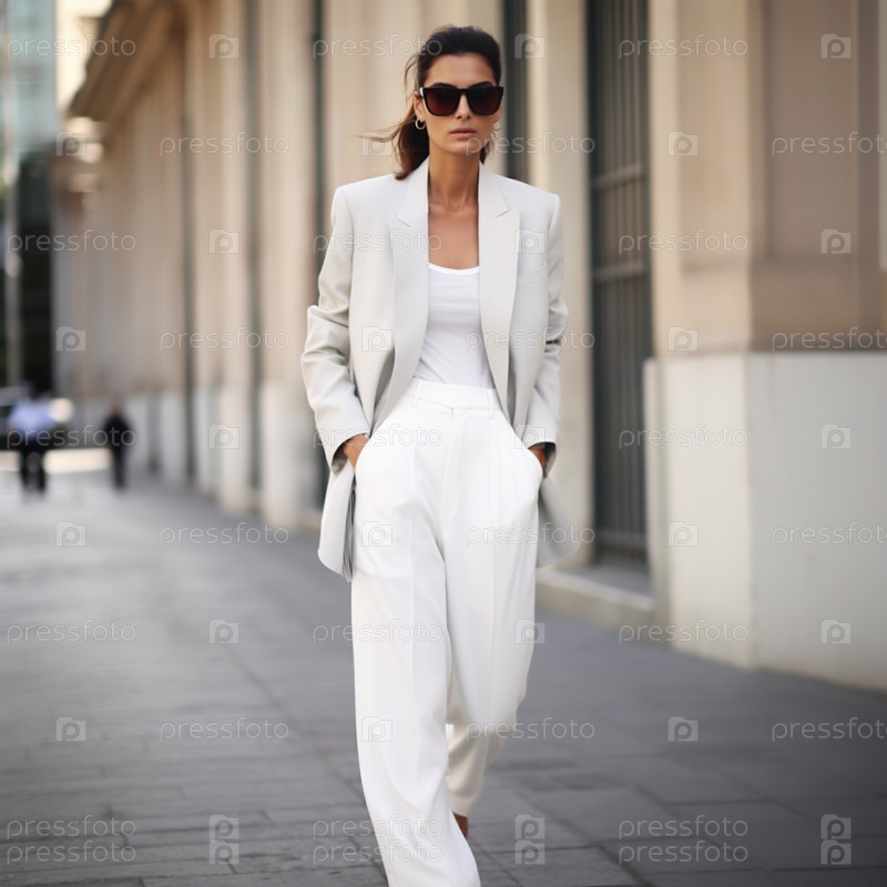 Женщина в брючном костюме на улице