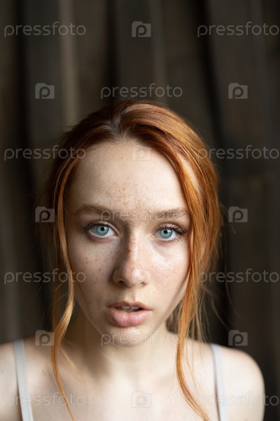 Портрет молодой красивой женщины с рыжими волосами в студии