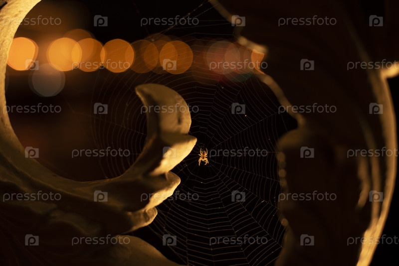 Паук на путине в ночном городе