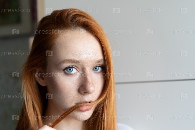 Портрет молодой красивой женщины с рыжими волосами в студии