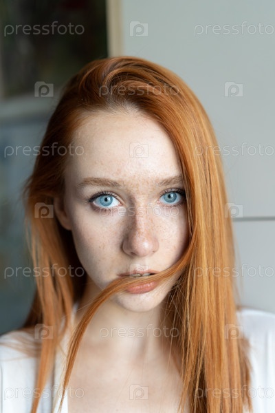 Портрет молодой красивой женщины с рыжими волосами в студии