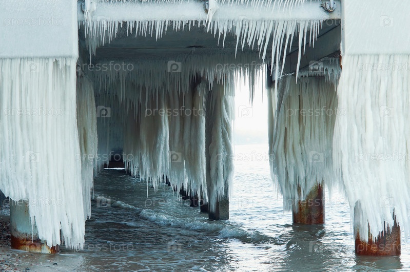 Море замерзло, пробито льдом, морское побережье во льду зима на балтийском море, гололедица на набережной