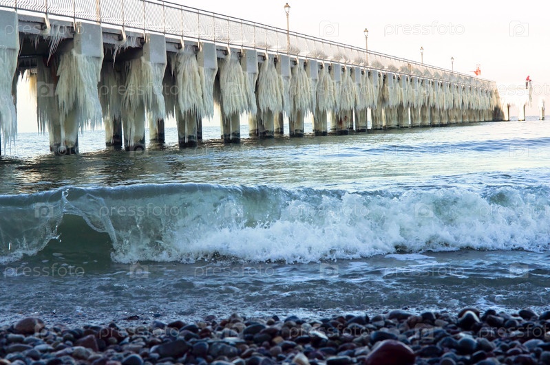 Море замерзло, пробито льдом, морское побережье во льду зима на балтийском море, гололедица на набережной