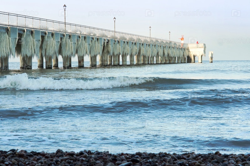 Море замерзло, пробито льдом, морское побережье во льду зима на балтийском море, гололедица на набережной