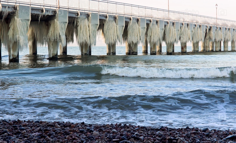 Море замерзло, пробито льдом, морское побережье во льду зима на балтийском море, гололедица на набережной