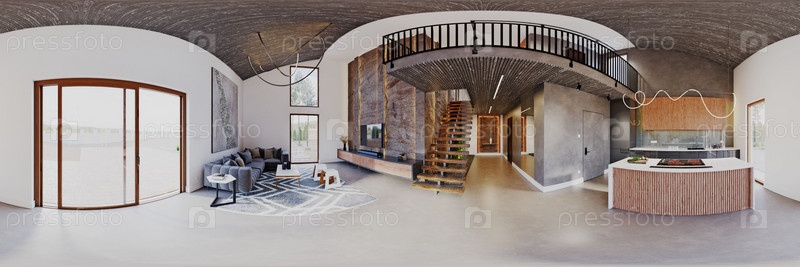 360-градусная панорама жилого интерьера. 3D рендеринг