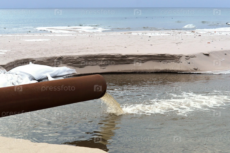 Канализационная труба в море, грязные канализационные сточные воды, загрязнение окружающей среды