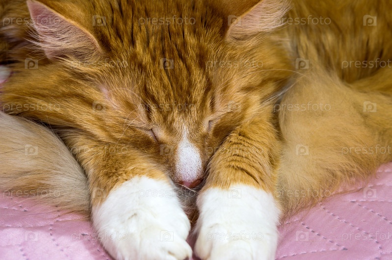 Спит пушистый рыжий кот. Морда и лапы рыжего кота
