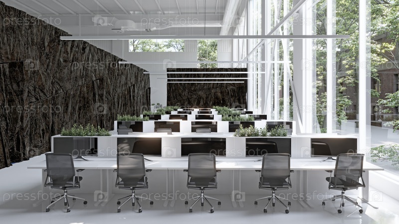 Современный интерьер офиса с элементами камня
