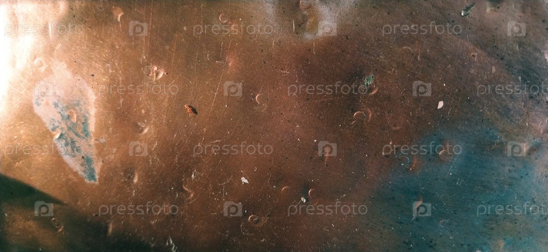 Бронзовая металлическая поверхность. Неровная текстура металла с царапинами, выбоинами и вмятинами. Красные, коричневые, оранжевые, бронзовые оттенки. Литье металла. Аппаратное обеспечение
