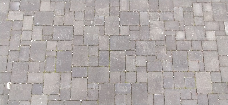 Мощеная улица старого города, выложенная квадратной и прямоугольной каменной плиткой. Мягкие бежевые, коричневые и серые цвета и тона. Текстура камня. Геометрический узор