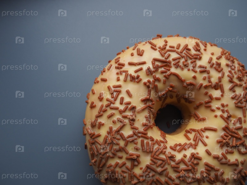 Пончик или пончик. Разновидность дрожжевого жареного теста. Сладкая закуска, которую можно приготовить дома или купить в пекарнях, супермаркетах, продуктовых ларьках. Вкусный пирог с легкой глазурью на темно-сером фоне