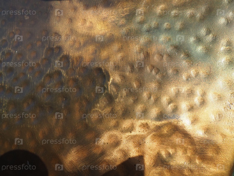 Металлическая бронзовая пластина с текстурой. Полированная поверхность из бронзы или меди с вмятинами, царапинами и углублениями. Металлическая текстура