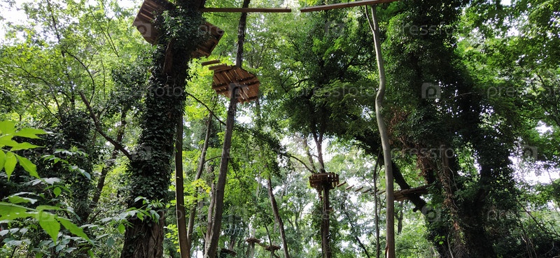 Отправляйтесь в приключение обезьяны. Расположены в национальных парках и местных местах отдыха. Деревянные и веревочные конструкции для передвижения