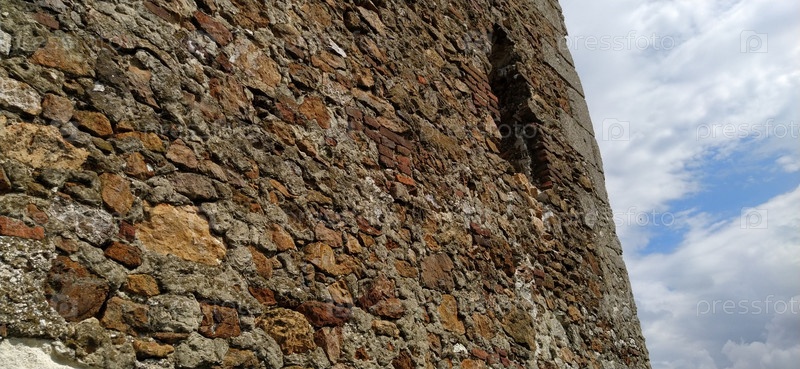 Стены старой башни. Каменная кладка, веками стоявшая под открытым небом. Достопримечательности Сербии. Кула