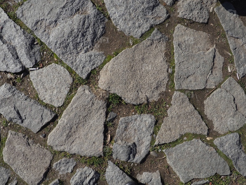 Булыжная дорога. Большие камни на дороге. Фон из больших камней. Дорожное покрытие. Текстура камней