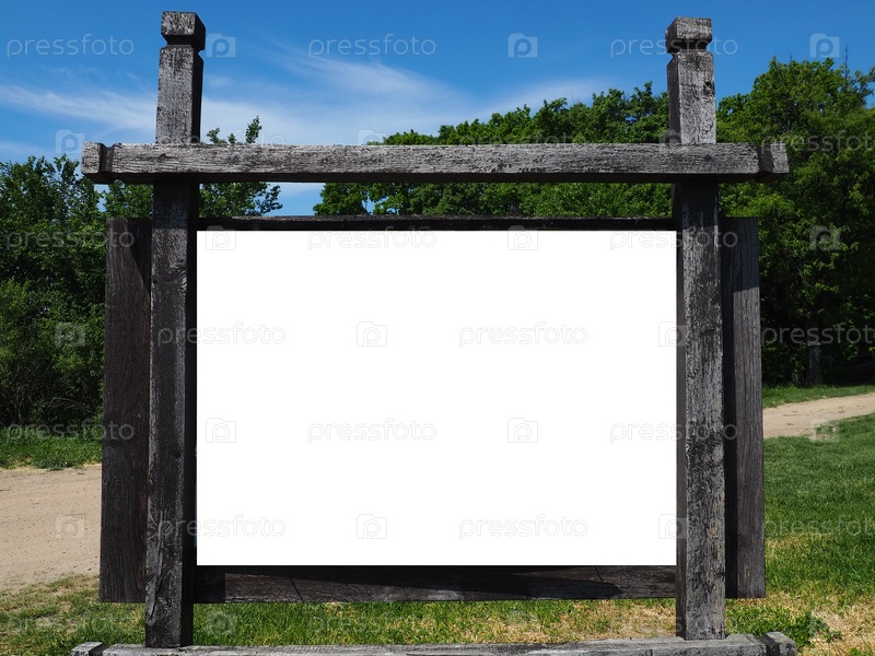 Пустой белый горизонтальный прямоугольный пилон стоит на макете лесной грунтовой дороги. Пустая панель для рекламы, рекламный макет. Прозрачный баннер в рамке холста для шаблона рекламы компании. Фрушка Гора Сербия