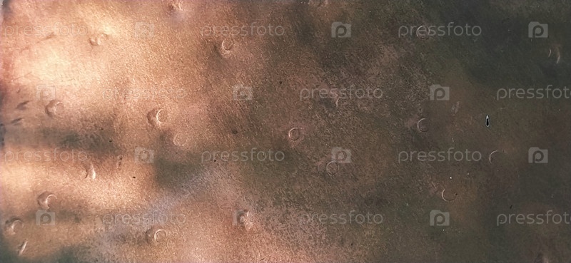 Бронзовая металлическая поверхность. Неровная текстура металла с царапинами, выбоинами и вмятинами. Красные, коричневые, оранжевые, бронзовые оттенки. Литье металла. Аппаратное обеспечение