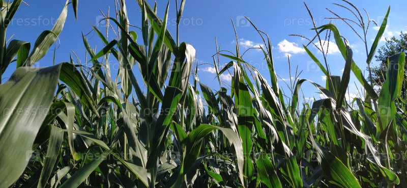 Кукуруза на стебле в поле. Кукурузное поле с растениями. Цветение и плодоношение кукурузы. сельское хозяйство