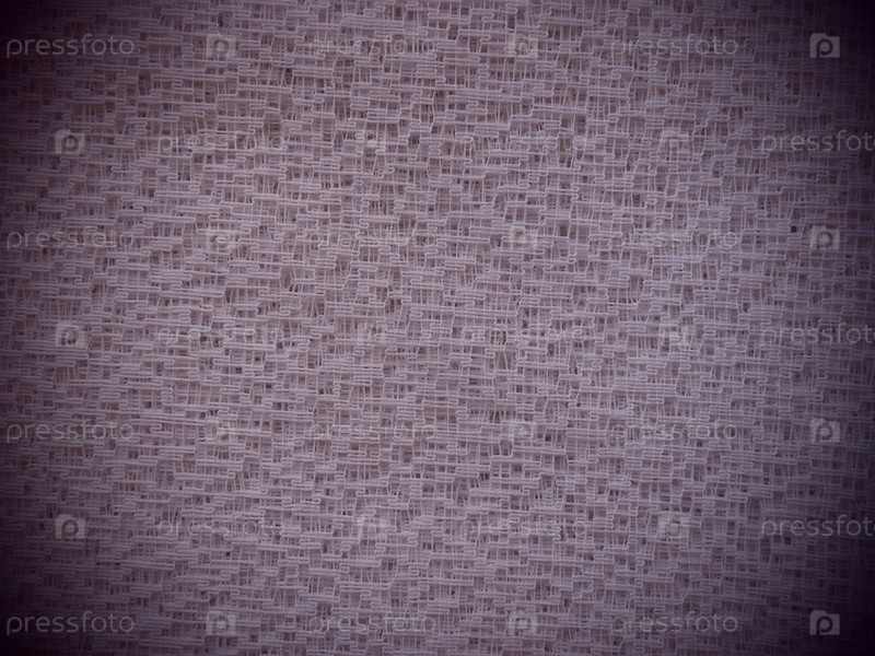Прозрачный тюль бледно-сиреневого или фиолетового цвета в виде сетки. Сетчатая ткань. Крупный план. Вуаль или муслин. Крупный план занавески с отверстиями разного размера. Абстрактный фон. Темное виньетирование по краям