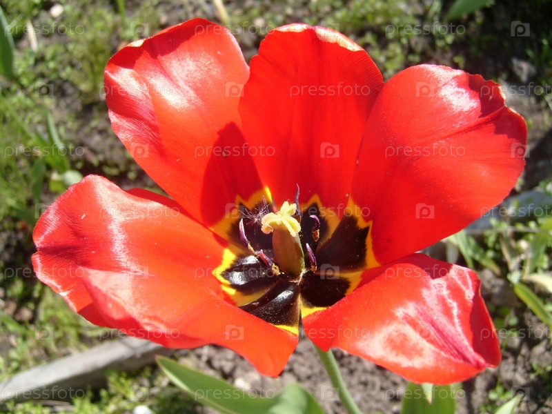 Красный мак крупным планом сверху по горизонтали. Открытый бутон красного цветка мака в поле