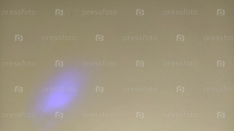 На листе бумаги след фиолетового направленного луча, исходящего от детского светящегося меча