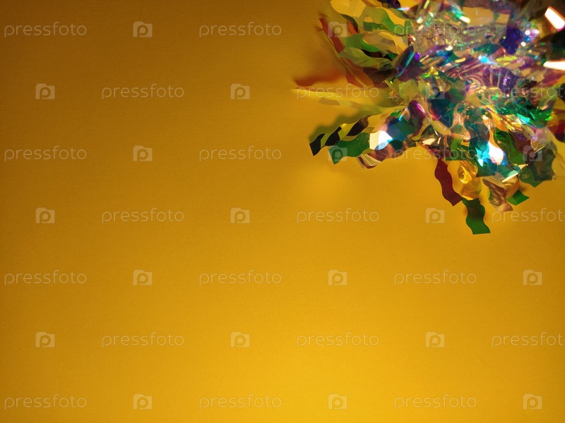 Лист темно-желтой бумаги с подсветкой снизу. Справа вверху декоративный элемент из тонкой алюминиевой рождественской фольги. Может использоваться в качестве фона на открытке или на веб-сайте