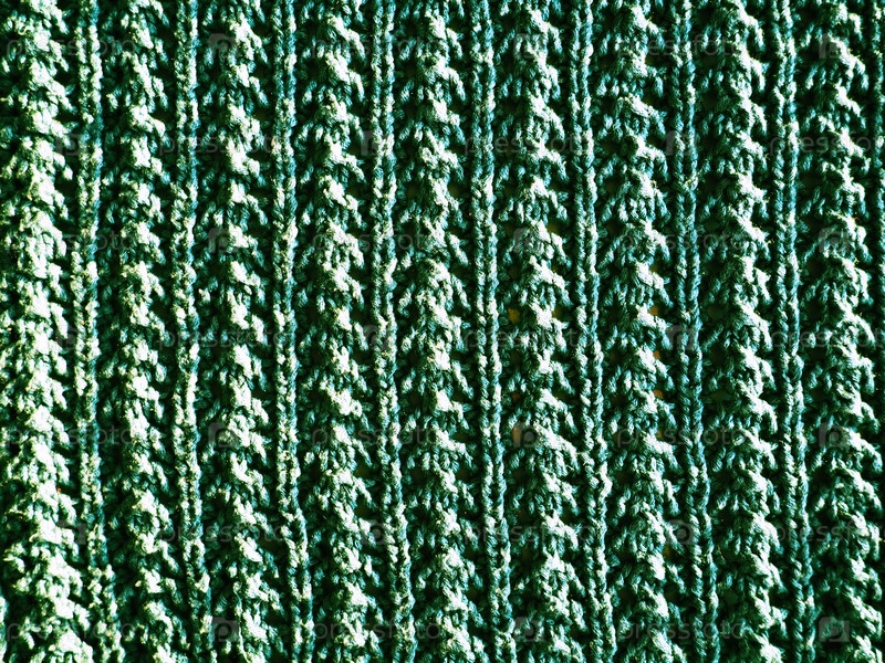 Вязаный узор из зеленой пряжи. Пышная машинная или ручная вязка. Теплый гардероб на осенне-зимний период. Вязать лицевыми, изнаночными петлями. Способ вязания – волнистая резинка
