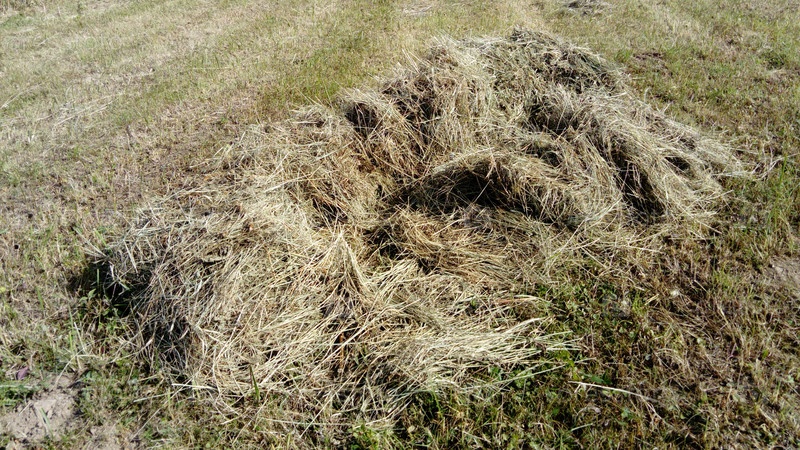 Сено на склоне горы. Изображение сухой травы, сложенной в кучу. Текстура натурального материала. Сено из ячменного гриба. Золотая осень в горах во время сенокоса