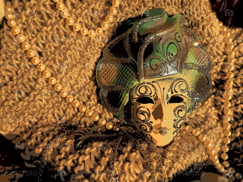 Карнавальная маска на вязаном фоне с бисером и блестками. Элемент костюма карнавального фестиваля