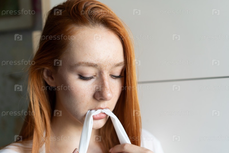 Портрет молодой красивой женщины с рыжими волосами в студии