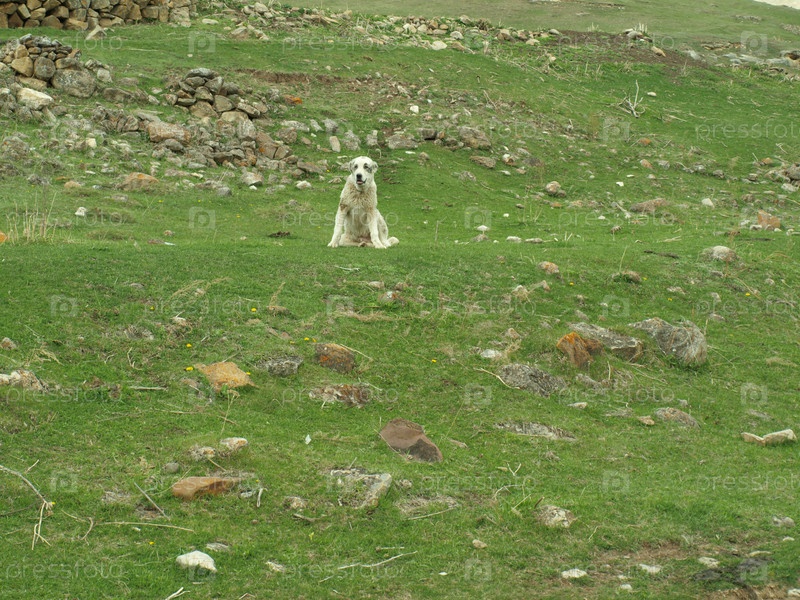 Алабай на фоне гор