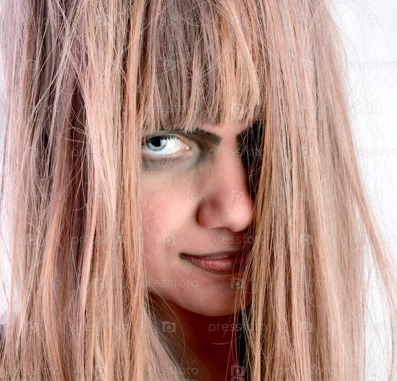 Девушка с грязными и неухоженными волосами. Болезнь волос. Ведьма, волшебница. Хэллоуин