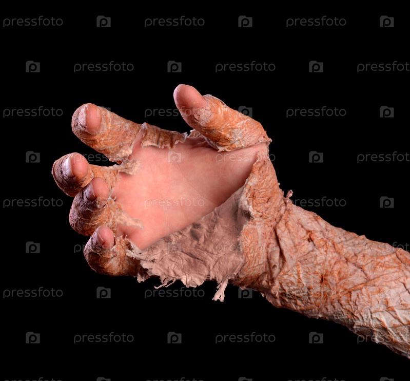 Рука со старой искусственной кожей изолирована на черном фоне. Хэллоуин