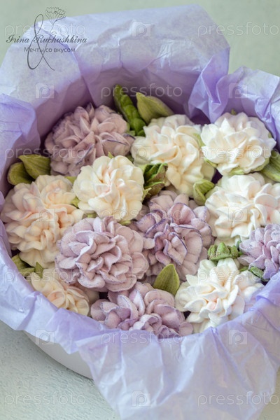 Домашний зефир в подарочной коробке на светлом фоне