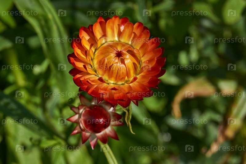 В саду цветет бессмертник (лат. Helichrysum) крупный род семейства Астровые (Asteraceae)