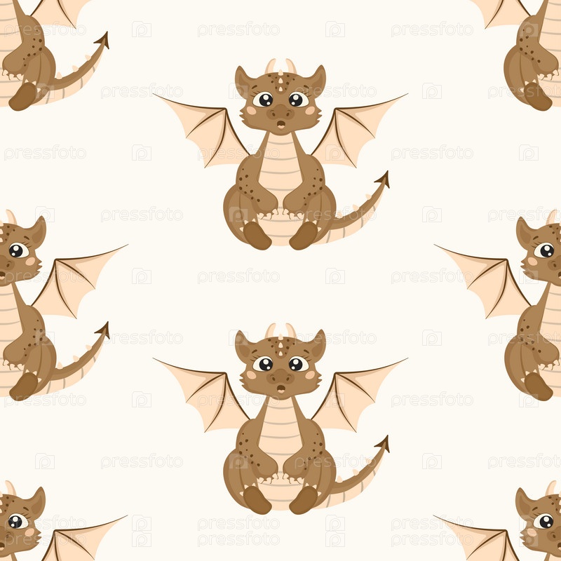 Бесшовный узор с милым драконом в мультяшном стиле