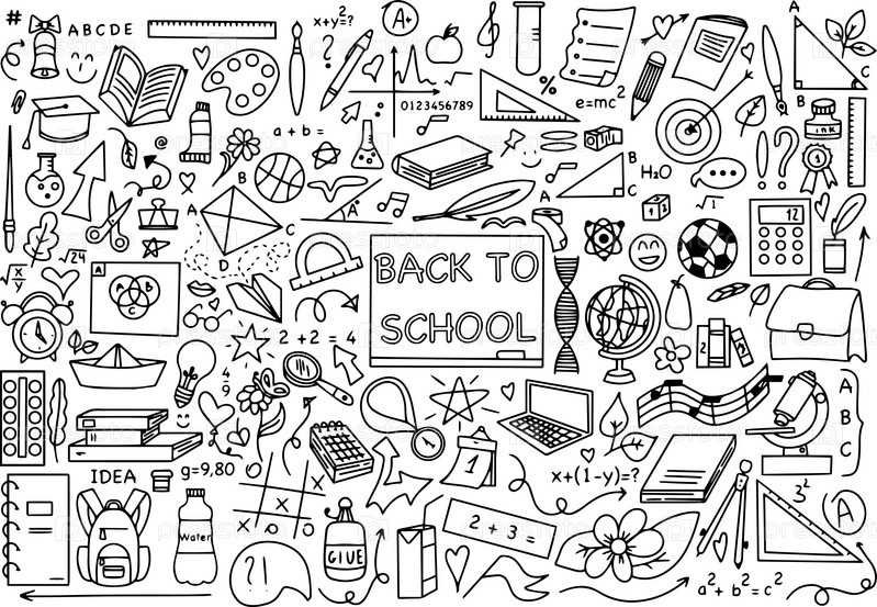 Фон школьных икон в стиле каракулей. Школьное образование. Снова в школу рисунок каракулей. Векторная иллюстрация