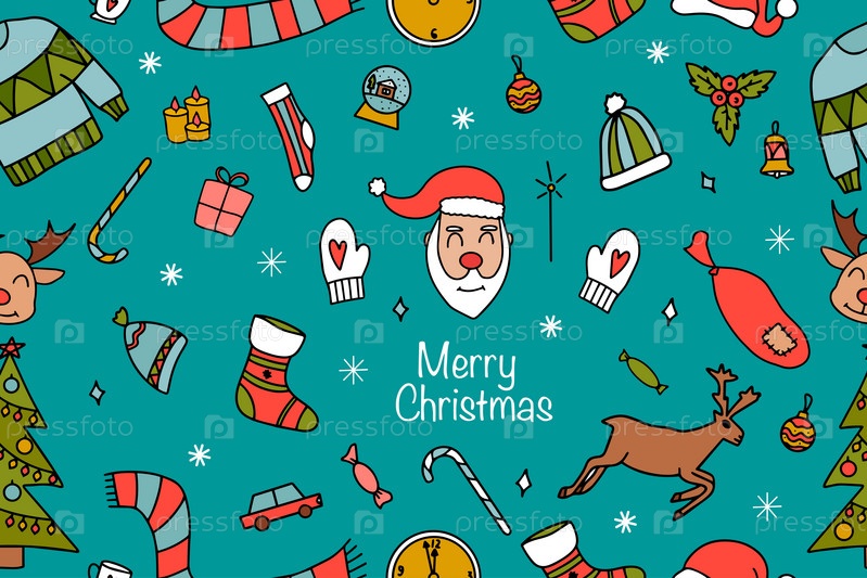 Рождественский бесшовный узор из каракулей. Бесконечная текстура для обоев, фона веб-страницы, оберточной бумаги
