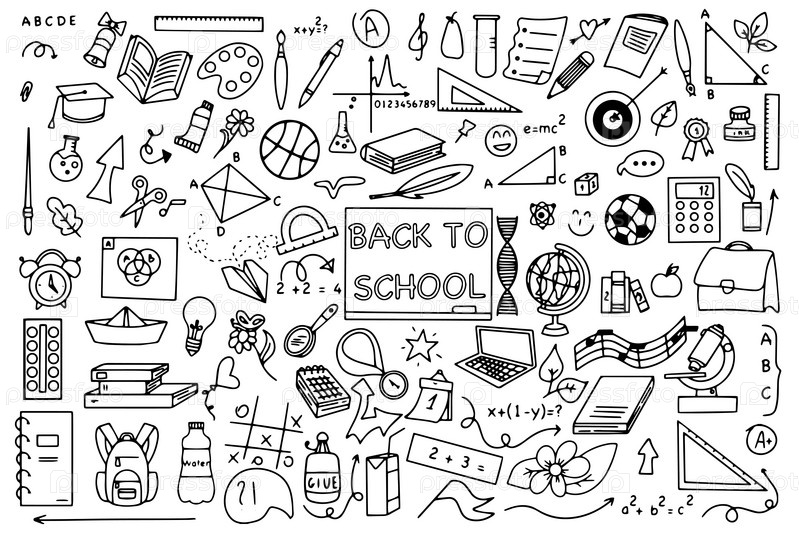 Фон школьных икон в стиле каракулей. Школьное образование. Снова в школу рисунок каракулей. Векторная иллюстрация
