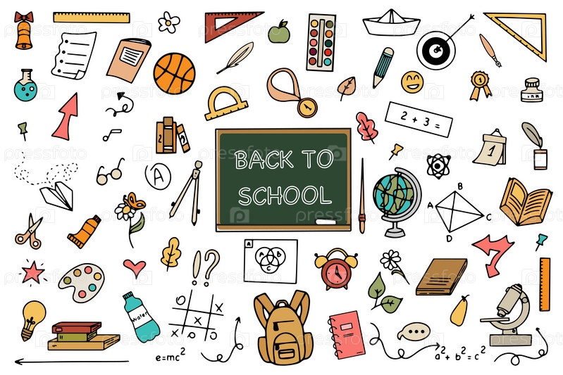 Фон школьных икон в стиле каракулей. Школьное образование. Снова в школу рисунок каракулей. Векторная иллюстрация