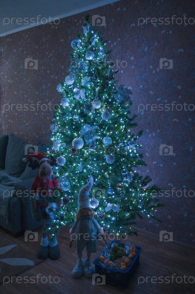 Крупным планом рождественская елка, украшенная звездными праздниками, кануном Нового года и концепцией празднования Рождества