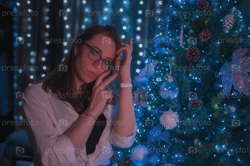 Удивительные моменты праздника: счастливая женщина позирует дома на фоне елки