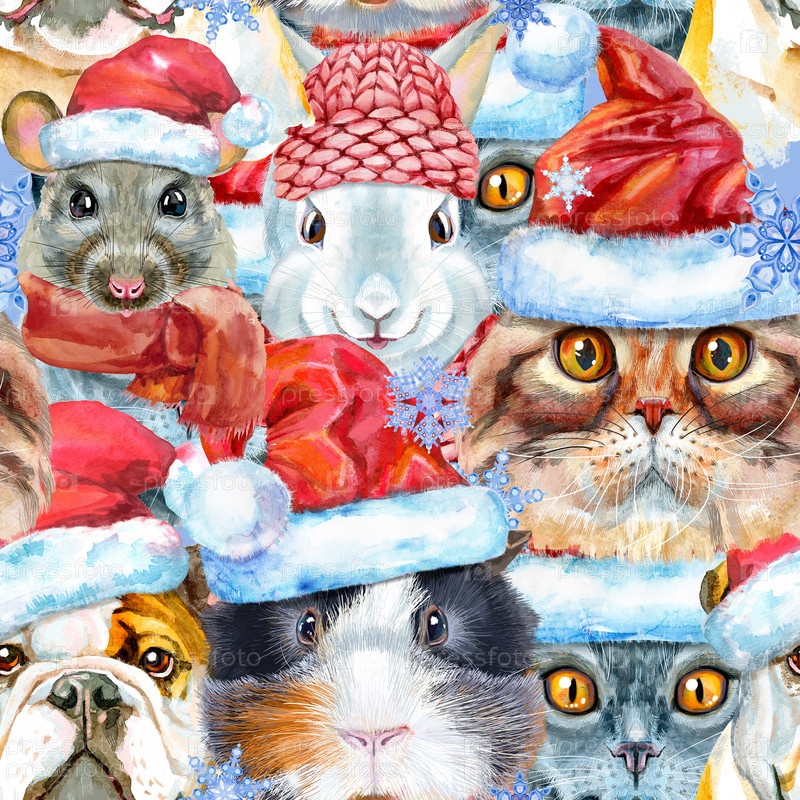 Граница с домашними животными. Ручная роспись акварелью, изолировать клип-арт на белом фоне. Дизайн баннера