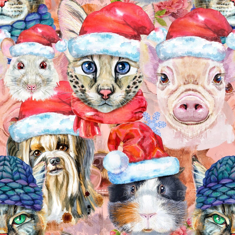 Граница с домашними животными. Ручная роспись акварелью, изолировать клип-арт на белом фоне