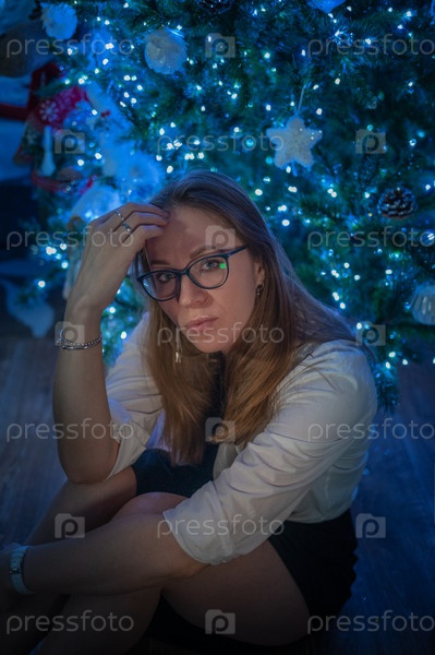 Удивительные моменты праздника: счастливая женщина позирует дома на фоне елки