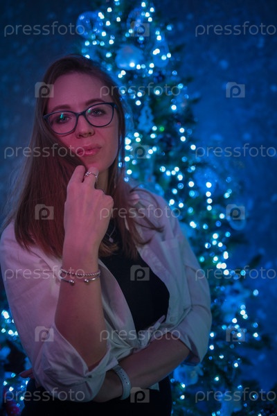 Удивительные моменты праздника: счастливая женщина позирует дома на фоне елки