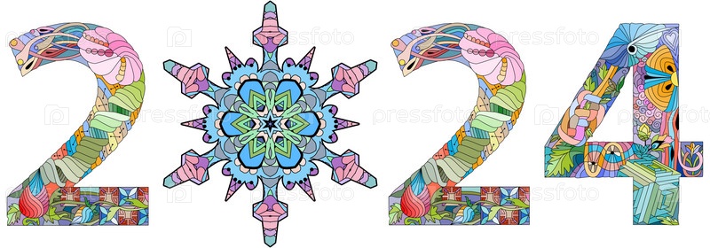 Текстовый дизайн логотипа 2024 года со снежинкой. Шаблон дизайна Праздничный типографский плакат, баннер или поздравительная открытка с Новым годом