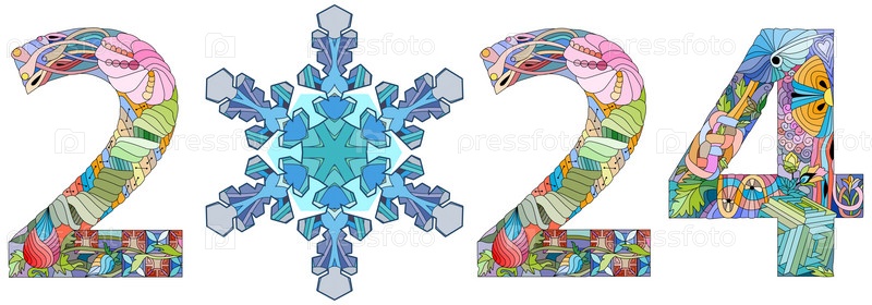 Текстовый дизайн логотипа 2024 года со снежинкой. Шаблон дизайна Праздничный типографский плакат, баннер или поздравительная открытка с Новым годом